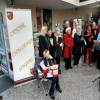 Deborah Whitehouse, daughter of former Cancer Challenge Choir member, Mair Evans, presents a cheq